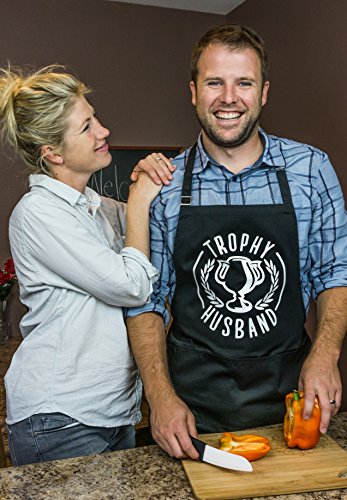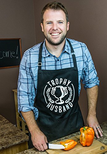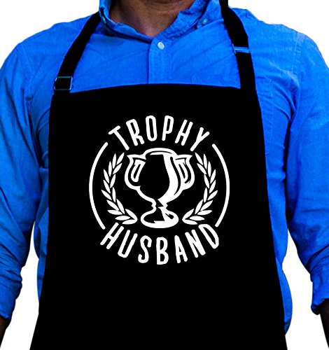 BBQ Grill Apron - Trophy Husband - Funny Apron For Dad - 1 Size Fits All Chef Apron High Quality Poly/Cotton 4 Utility Pockets, Adjustable Neck and Extra Long Waist Ties