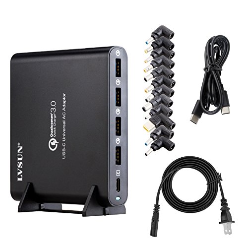 USB CHARGING INNOVATION (1 USB-C + 4 QC3.0 Ports) - The 1st USB Type-C Universal Laptop Charger supply the power for your HP Asus Toshiba and Samsung etc laptops via USB by utilizing Quick Charge 3.0 & smart charging tech. The USB-C Port delivery power for Apple MacBook, HP Spectre, HP Elite X2, Dell XPS13 and 4 QC3.0 USB ports boost fast charging for your tablets, phones & any USB powered smart gadgets.