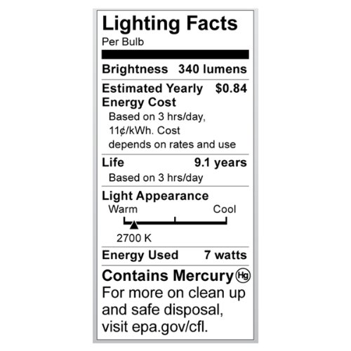 Satco S7327 7-Watt Candelabra Base Torpedo, 2700K, 120V, Equivalent to 40-Watt Incandescent Lamp