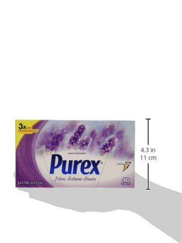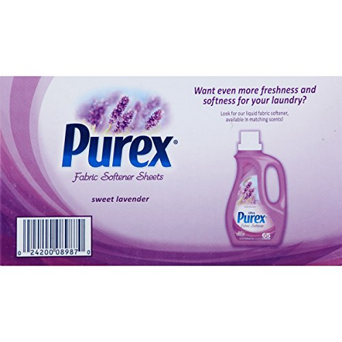 -. Binding : Health and Beauty -. Brand : Purex -. EAN : 0024200089870 -. Feature : A convenient way to add a refreshing scent while reducing static cling to any load of laundry / Keep your whole house smelling fresh! Just choose your favorite fragrance and tuck a sheet in hampers, in the linen closets, and any other laundry storage areas. / Relax and renew with the calming scent combination of freshly-picked lavender and sun-soaked lilies. -. IsAdultProduct : 0 -. Label : Dial Corporation -. Manufacturer : Dial Corporation -. Model : 08987 -. MPN : 5596435 -. NumberOfItems : 1 -. PackageQuantity : 1 -. PartNumber : 5596435 -. ProductGroup : Health and Beauty -. ProductTypeName : HEALTH_PERSONAL_CARE -. PublicationDate : 2015-08-14 -. Publisher : Dial Corporation -. ReleaseDate : 2015-08-11 -. Studio : Dial Corporation -. Title : Purex Fabric Softener Dryer Sheets, Sweet Lavender, 40 Count -. UPC : 024200089870