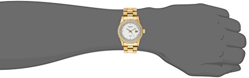 - Feature : Mother-Of-Pearl dial with diamonds at the 12, 6, and 9 o'clock hour markers / Crystal filled bezel / Date window displayed at three o'clock position / Gold-tone stainless steel bracelet with deployant clasp / Water resistant to 99 feet (30 M): withstands rain and splashes of water, but not showering or submersion
