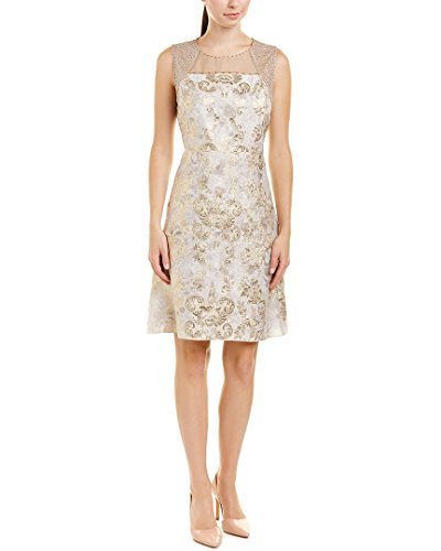 Gold floral brocade/lurex sleeveless dress with exposed gold zipper