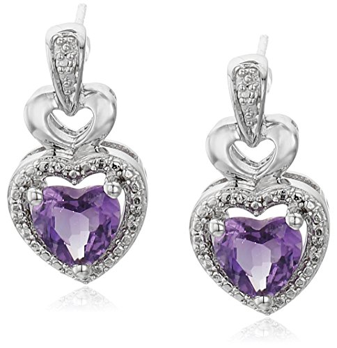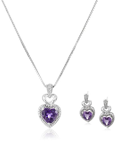 Jewelry set featuring coordinating necklace and dangle earrings with heart-shape amethysts and small diamond accents