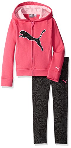 PUMA Little Girls' Toddler 2 Piece Zip up Hoodie and Pant Set, Pink Glow, 2T