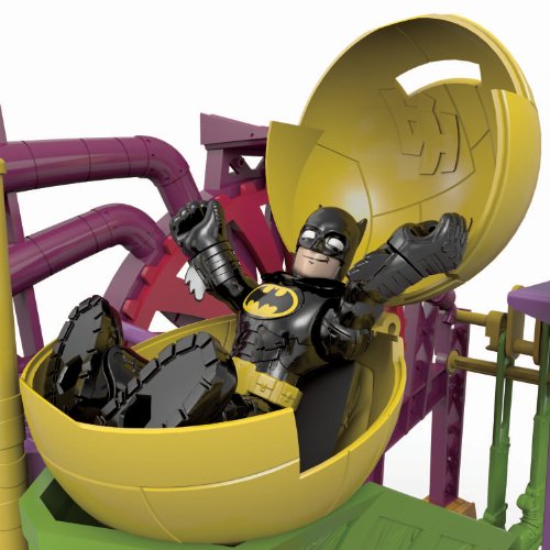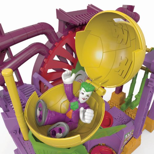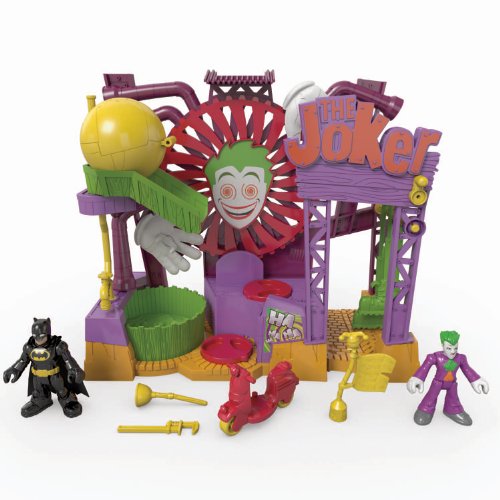 -. Binding : Toy -. Brand : Fisher-Price -. EAN : 0885871624063 -. Feature : Rotate the yellow pipe on the Laff Factory sign to activate kicking boots! / Turn The Joker on the front disk to spin the chemical vat! / Turn The Joker on another disk to hear him laugh as the giant hand traps spin! / The Joker Laff Factory includes The Joker figure, his scooter, pipe wrench, plunger and rolling trap / Place the rolling trap at the top of the ramp-it drops on other figures! -. IsAdultProduct : 0 -. ItemPartNumber : BFT55 -. Label : Fisher Price -. LegalDisclaimer : Warning: Small parts may be generated -. Manufacturer : Fisher Price -. Model : BFT55 -. MPN : BFT55 -. NumberOfItems : 1 -. PackageQuantity : 1 -. PartNumber : BFT55 -. ProductGroup : Toy -. ProductTypeName : TOYS_AND_GAMES -. Publisher : Fisher Price -. Studio : Fisher Price -. Title : Fisher-Price Imaginext DC Super Friends The Joker Laff Factory -. UPC : 885242826324 -. Warranty : No Warranty