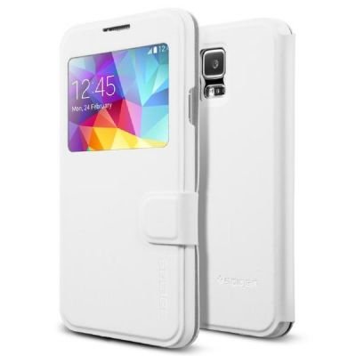 - Title : Galaxy S5 Case, Spigen® [Stand Feature] Samsung Galaxy S5 Case Flip [Flip View] [Metallic White] Premium Slim Flip Cover Folio Case with View Window for Galaxy S5 / Galaxy SV / Galaxy S V - Metallic White (SGP10843)
