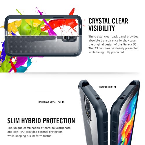 - Feature : Fashion Stylish bumper case with back protection / Compatible with All Samsung galaxy s5 case / Easy snap on/off installation / Perfect cutouts allow you to maximize the functionality of your Galaxy S5 / Bumper case with clear back cover