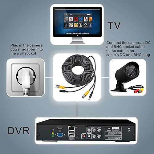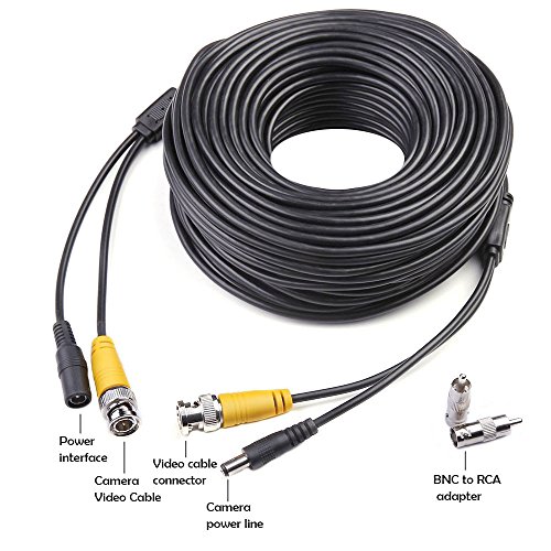 Masione 100ft Feet Video Power Cables BNC RCA Security Camera Wires Cords for CCTV DVR Home Surveillance System with Bonus Connectors