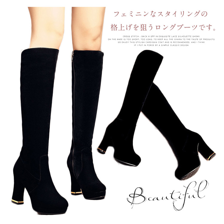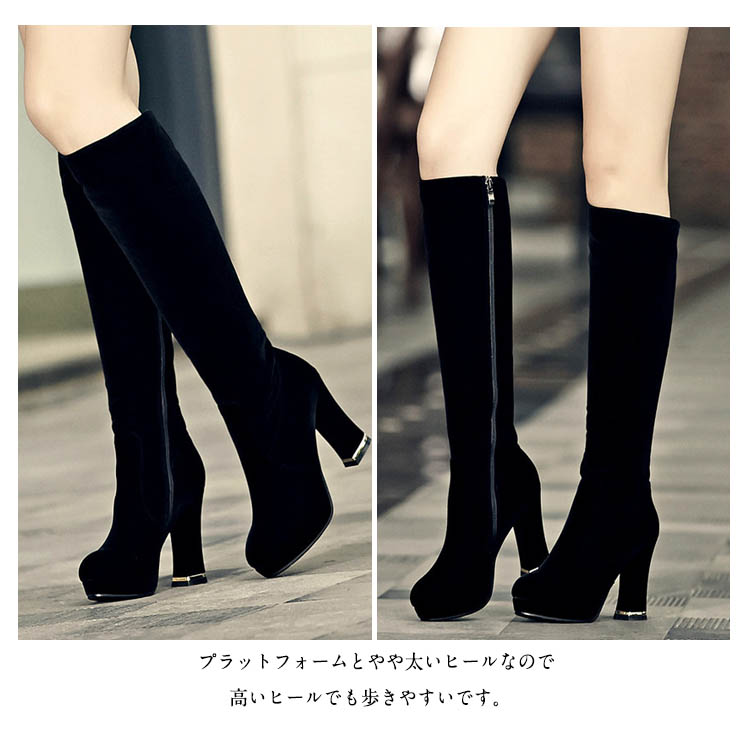 | フェミニンなスタイリングの格上げを狙うロングブーツです。スエード素材なので足当たりがよく、サイドファスナーで脱ぎ履きもスムーズです。プラットフォームとやや太いヒールなので高いヒールでも歩きやすいです。またボトムをインしたり、レッグウォーマーと合わせてトレンドスタイリングも楽しみたいアイテム。 | |