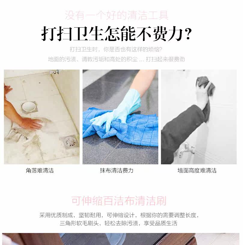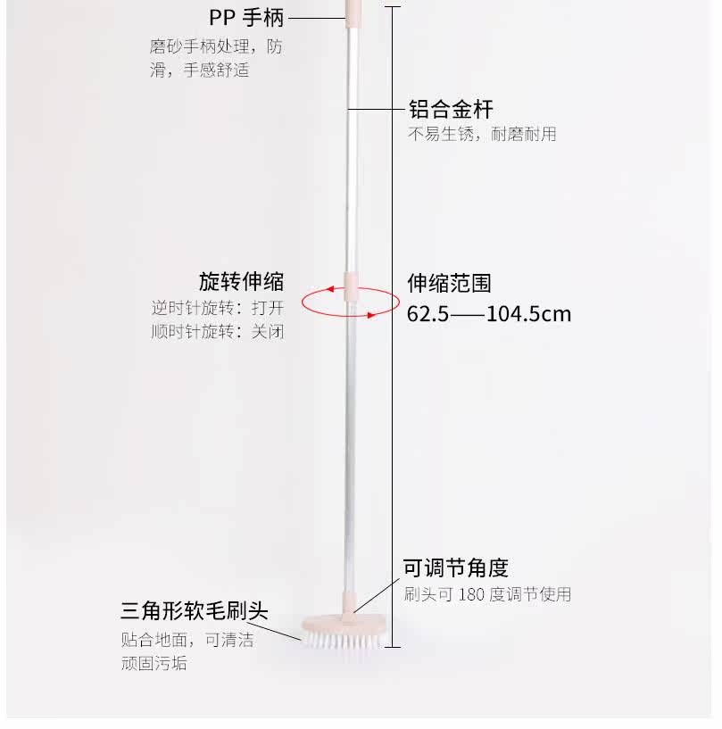 可伸缩三角头软毛去污浴缸瓷砖清洁刷藕粉色