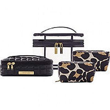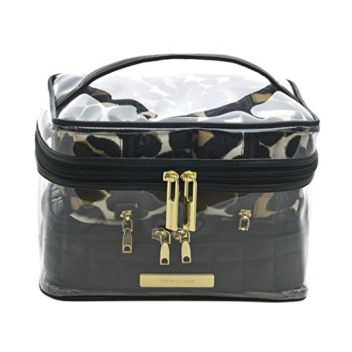 Trina Tartan + Twine Tawney Steppe Safari Animal Print Leopard 4 Piece Train Case Cosmetic Bag Set
