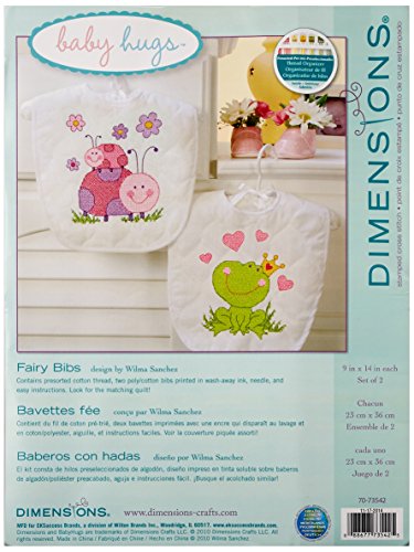Dimensions Baby Hugs "Fairy" Bibs Stamped Cross Stitch Kit, 9-Inch by 14-Inch, Set of 2