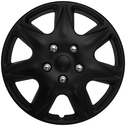 -. Brand : CoverTrend -. EAN : 0643129816321 -. Feature : Set of 4 Hub Caps, each 16 Inch Matte Black Finish. / Chrome Decorative Lug Nuts are affixed, non-removable. Will clear over your wheels lug nuts. / Easy Snap In "clip-on" Metal Retention Ring. / Replaces most 16" inch wheel size factory hubcaps, any make or model. / Made of ABS Plastic trendy design. Best Aftermarket Hub Cap in its price range. -. ManufacturerPartsWarrantyDescription : 90 day replacement on parts. -. MPN : 643129816321 -. PartNumber : 643129816321 -. ProductGroup : Automotive Parts and Accessories -. ProductTypeName : TIRE_AND_WHEEL_ASSEMBLIES -. Size : 16" -. Title : CoverTrend (Set of 4), Universal Aftermarket 16" Inch Matte Black Hub Caps Wheel Covers -. UPC : 643129816321