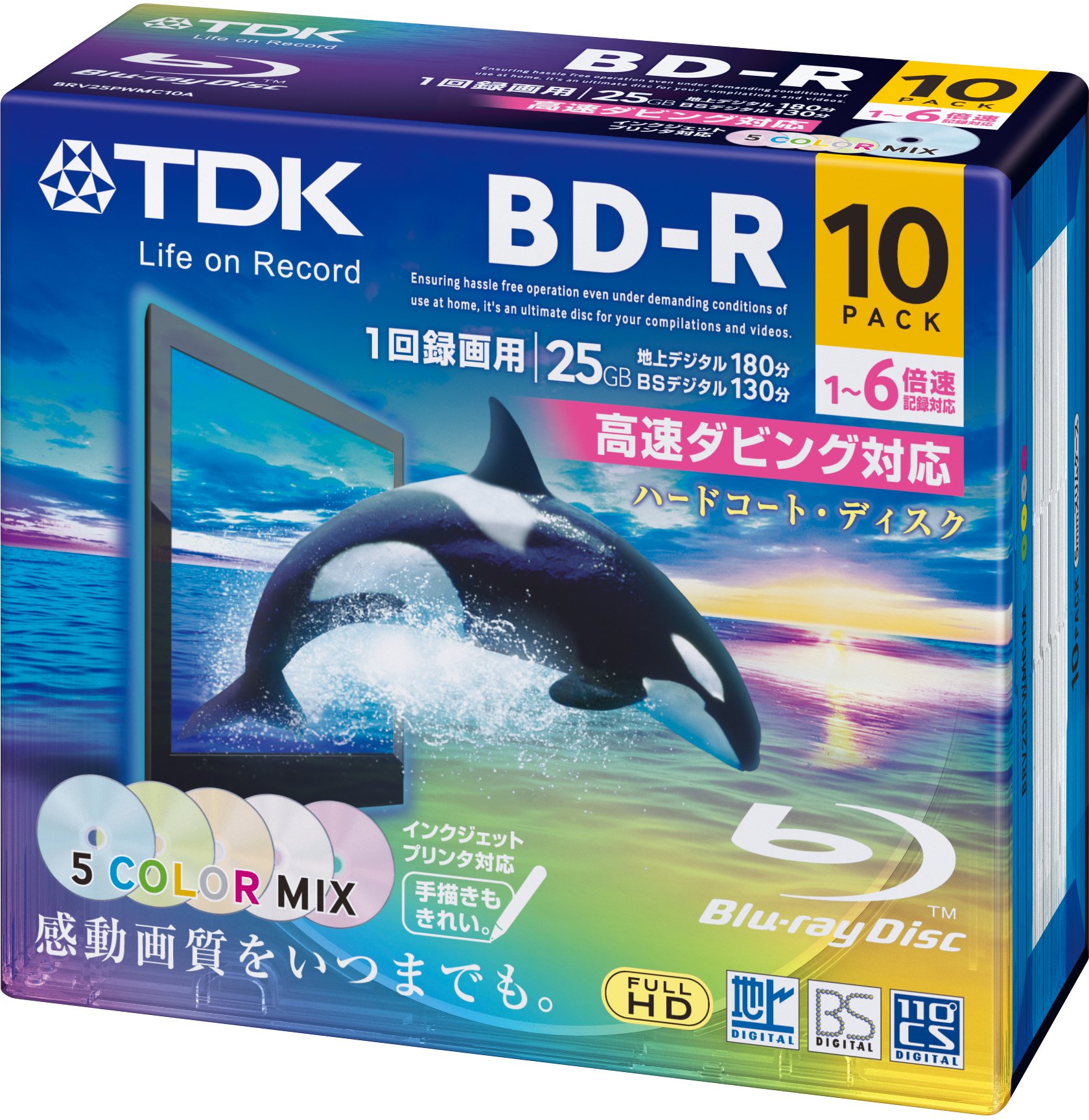 TDK Blu-ray BD-R Disk / 25GB 6x Speed 10 Pack colored discs in jewel cases
