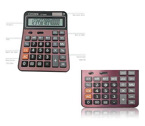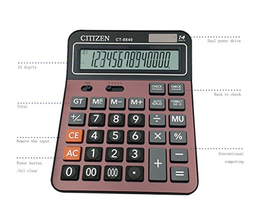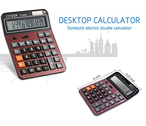 -. Feature : Human &comfortable button design : Durable silicone button, never fade. Computer digital button array is in line with the use of human habits. buttons give a comfortable tactility. / Dual power : Solar or battery-powered for all lighting conditions, long battery life. Never worry about powering off when you are working. Auto power-off make it energy saving. / Extra large 14 digit and tilted screen display for easy and accurate screen reading, improve your working efficeiency. Common keys like mark up keys and grand total keys meet the standard function of the calculator. / Basic office calculator with high quality anti-slip mat, more stable and humanized / Battery & Solar Powerd Standard Function Desktop Business Calculator with LCD Display Screen for Home & Office Use