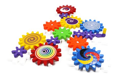 -. Feature : 16 bunte Zahnräder mit 6 Stickern / Kurbel, Achsen und Steckplatten