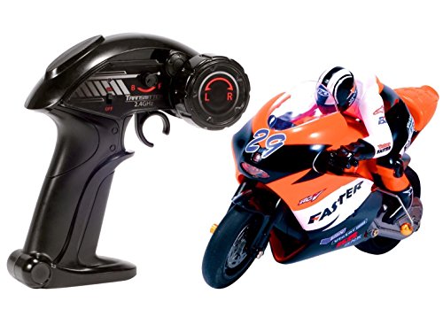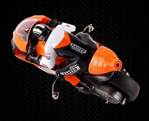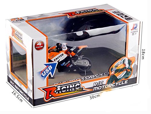 リアルなラジコンバイク。エンジンサウンド、サスペンション機能付。付属のUSBケーブルでPC等から充電可能。グリップ式コントローラで前進、ブレーキ、左右の操作可能。コントローラの電池挿入時に必要なミニドライバー付。※輸送中にタイヤのゴムがズレる場合がありますのでタイヤが回転するか確認してからお遊びください。