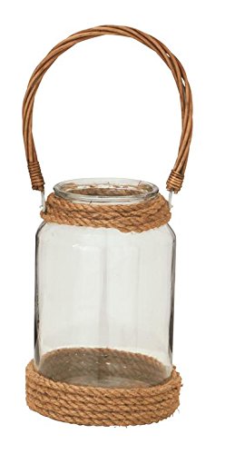 -. Feature : Dimensions: 7 diam. x 17H in. (with handle) / Modern, cylindrical glass with rope base / Rattan, jute, and glass construction / Clear and brown finish / Features rattan handle
