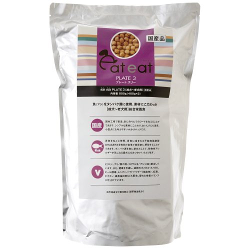 原材料:コーン、コーングルテンミール、コーンフラワー、フィッシュミール(アジ)、パン粉、大豆油、カルシウム、大豆たん白、小麦粉、チキンエキス、ビール酵母、レシチン、魚油(DHA、EPA)、カリウム、カルシウム、リジン、ナトリウム、メチオニン、コリン、紅麹、トマトパウダー、乾燥全卵、フラクトオリゴ糖、緑茶抽出物、鉄、亜鉛、ビタミンC、グルコサミン、クエン酸、ビタミンE,コンドロイチン、ナイアシン、マンガン、パントテン酸、銅、ビタミンA、ビタミンB6、B2、B1、パラアミノ安息香酸、ヨウ素、セレン、ビオチン、ビタミンB12