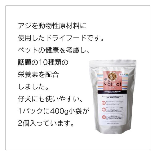 素材構成:粗たんぱく質28.0%以上/粗脂肪9.0%以上/粗繊維3.0%以下/粗灰分8.0%以下/水分10.0%以下/カルシウム0.9%以上/リン0.8%以上/カロリー(100g)386kcal
