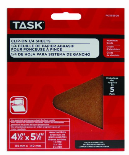 Task Tools POX55500 4-1/2-Inch by 5-1/2-Inch Clip-On 1/4-Sheet Sandpaper, Assorted Grit, 5-Pack