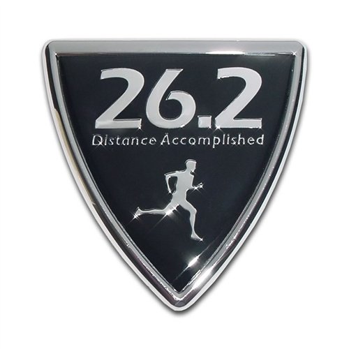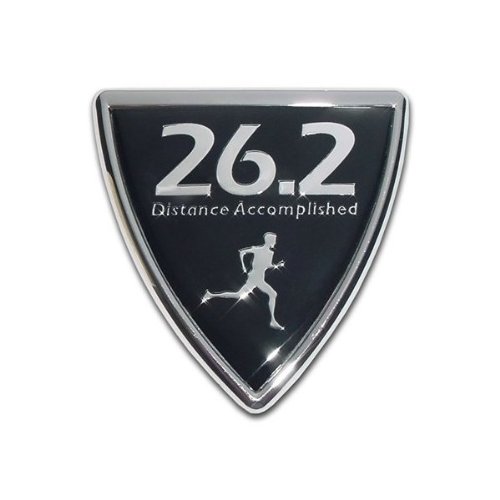 Studio : MVP Accessories Publisher : MVP Accessories Binding : Misc. Product Description Proudly display your accomplishment and enthusiasm for the marathon with this metal (NOT plastic) auto emblem. ?Emblem is made of chrome plated metal with a domed colored insert protected by a 1/8 inch thick PVC, made to withstand any outdoor condition. ?These officially licensed emblems will not chip or fade and will stay stuck to your vehicle with genuine 3M adhesive tape that will not damage the paint when removed. Looks great on all vehicles or any hard surface. ?Measures approx. 3 x 3 inches. 0