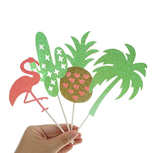 Tropical Hawaii Flamingo Pineapple Cactus Palm Tree Cake Cupcake Toppers Set of 12 by GOCROWN