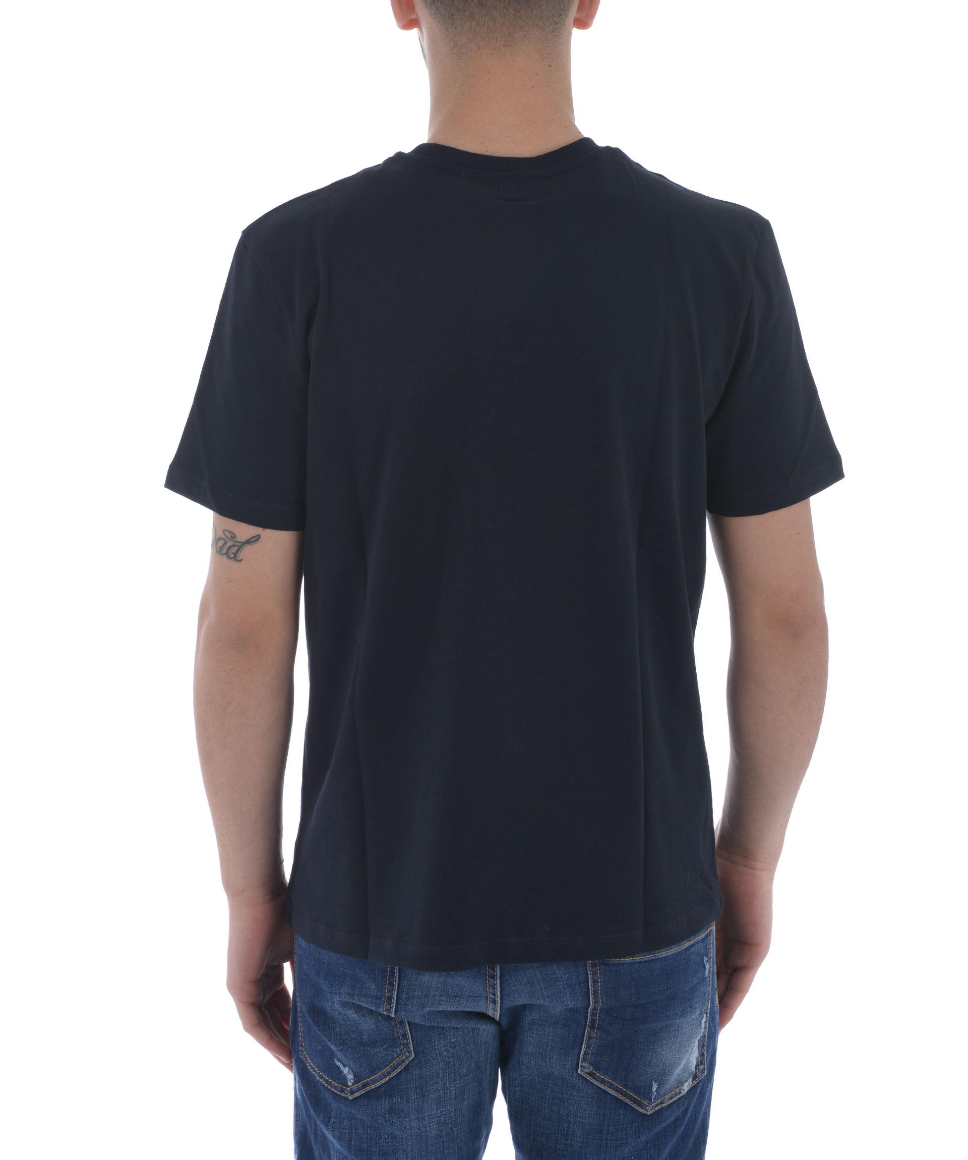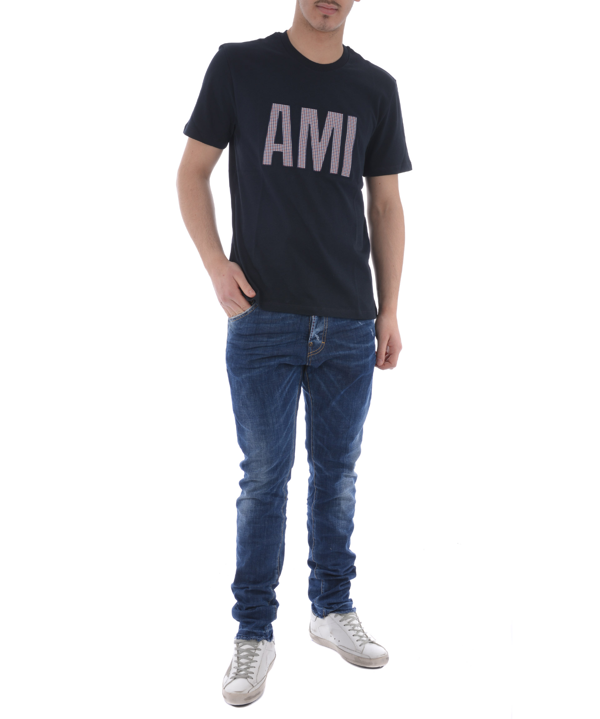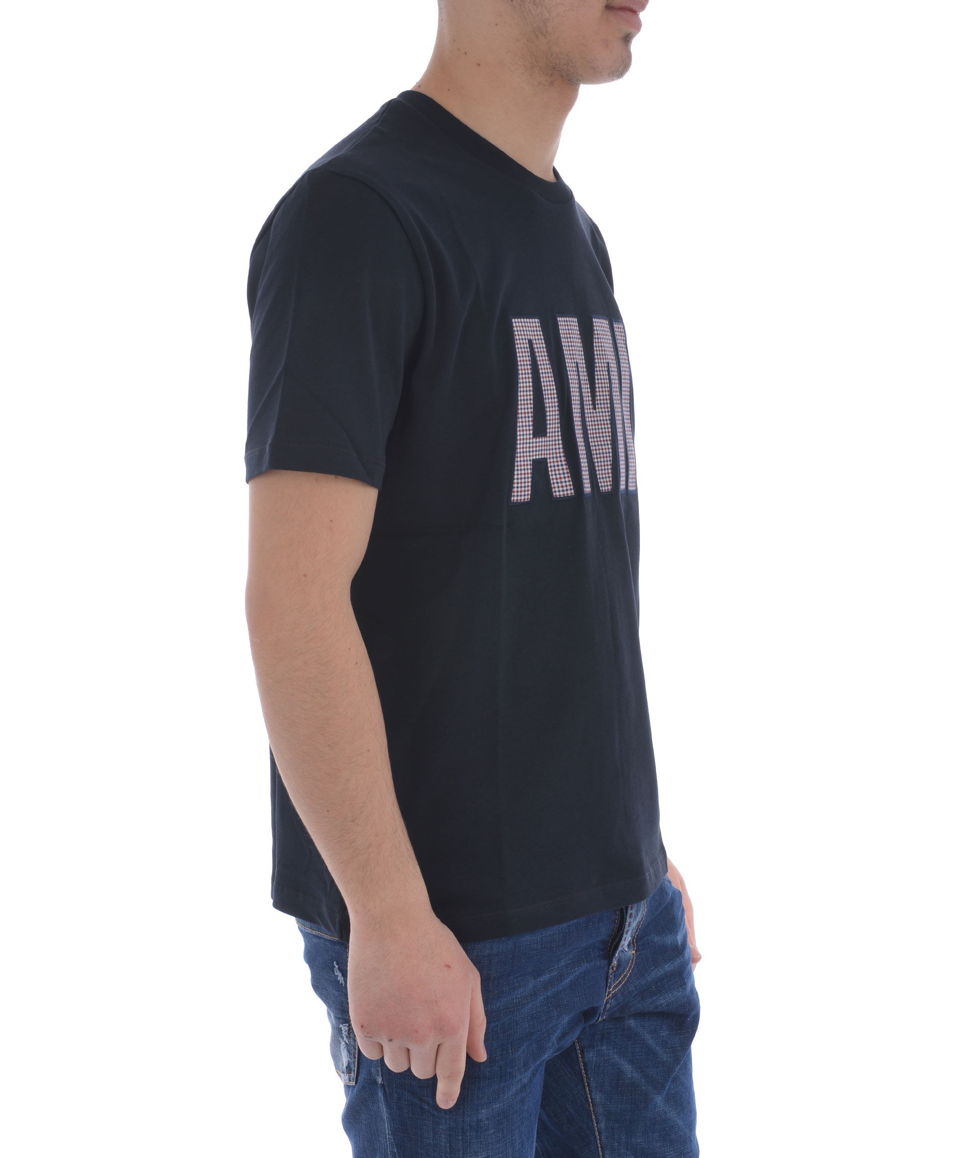 Crew Neck T-shirt from AMI Alexandre Mattiussi: Blue Crew Neck T-shirt with short sleeves, straight hem and logo detail at front.