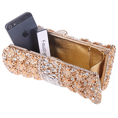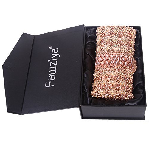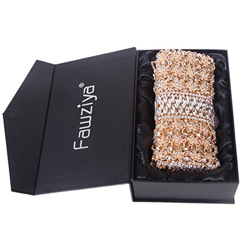 -. Feature : Diamonds:Fawziya use domestic grade A diamonds,12 cutting surface,a long-lasting gloss retention,one of leader in high class diamonds. / Hardware:Fawziya using K Gold plating process,each hardware is carefully selected,no scratches,no rust on the surface. / Fabrics:Fawziya use silk and satin,these materials are light,soft,colorful,shiny,noble and elegant. / The approximate size is 19.5(L)x7.5(W)x11.5(H)cm,Detachable chain straps measure 50cm. / Ideal for holding essentials like keys,mirror for touch-ups,lipstick and a cell phone.