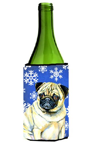 Pug Winter Snowflakes Holiday Wine Bottle Beverage Insulator Beverage Insulator Hugger