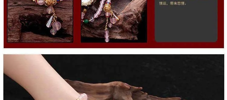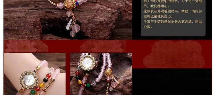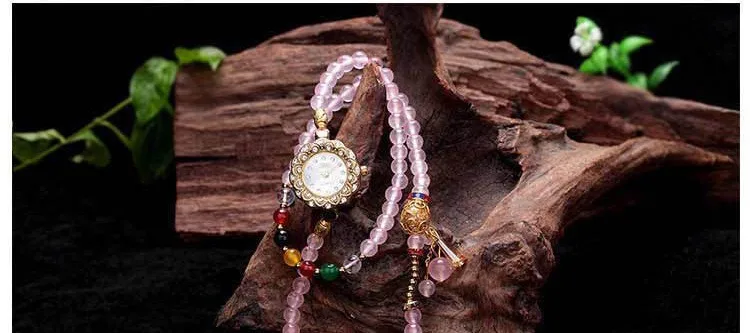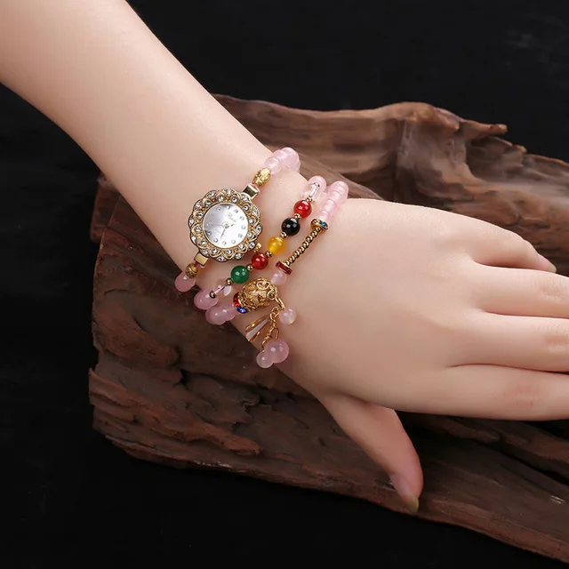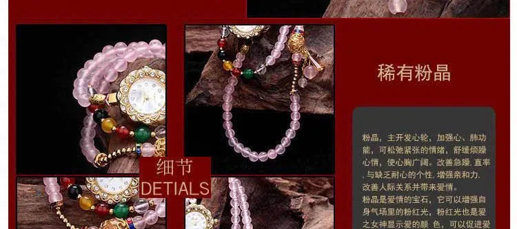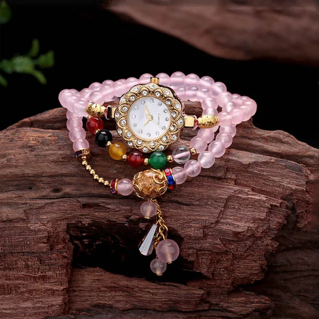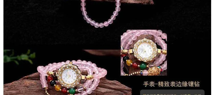 새로운 도착 브랜드 여성 천연 크리스탈 팔찌 시계 국가 스타일 핑크 옥 체인 팔찌 시계 크리스탈 체인 팔찌 시계