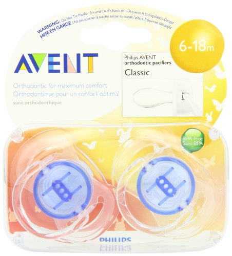 Philips AVENT BPA Free Translucent Pacifier, 6-18 Months, 2-Pack, Colors May Vary