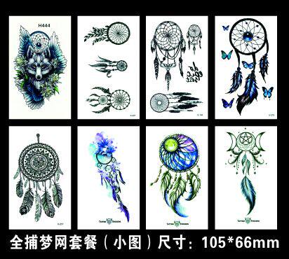 【一份8张】纹身贴男女防水捕梦网美好寓意纹身贴套餐包邮。【一张尺寸】约10*7cm【产品标配】使用说明+品牌包装信封+赠品小惊喜+(外包装信件袋,防水袋,确保贴纸万无一失),产品所见即所得,每张贴纸OPP独立包装,工厂直销,正品保证,请放心购买!