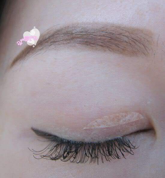 打底后, 贴布颜色与肤色更一致, 眼影更容易上色, 色差更小,