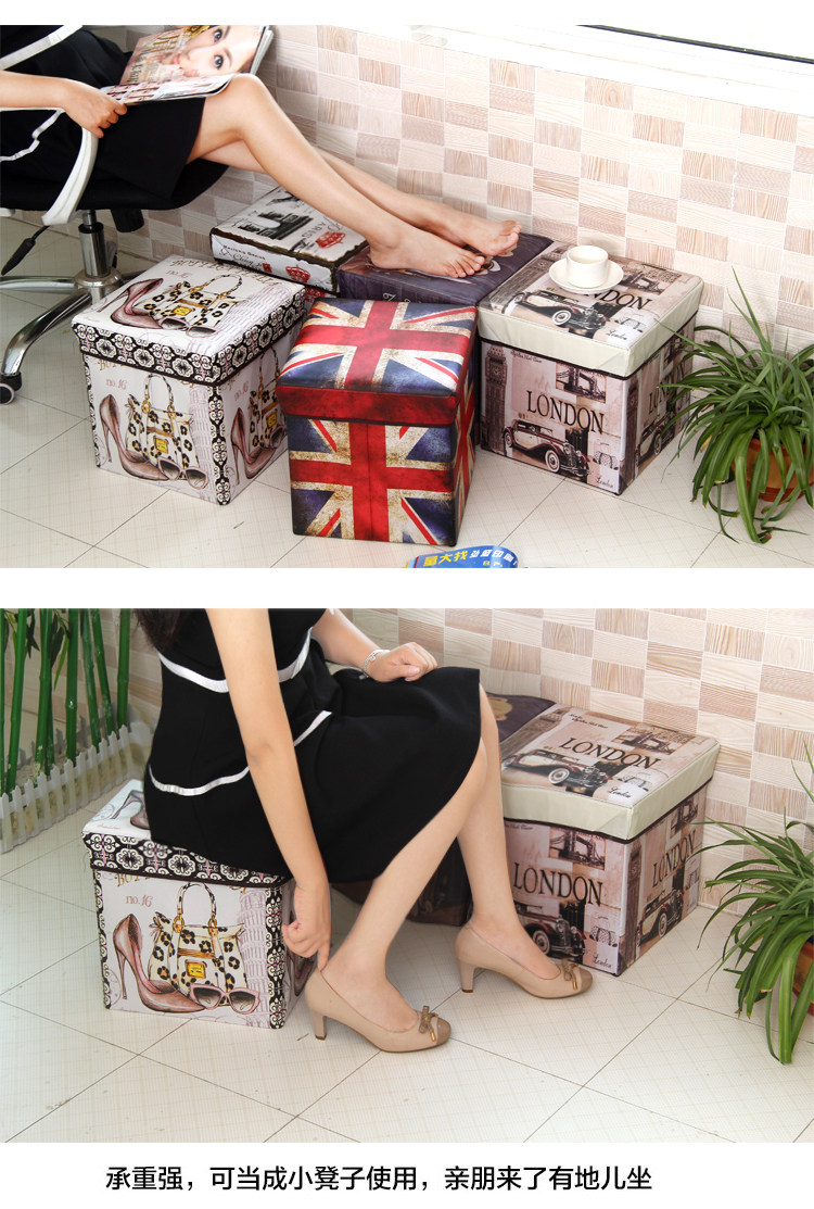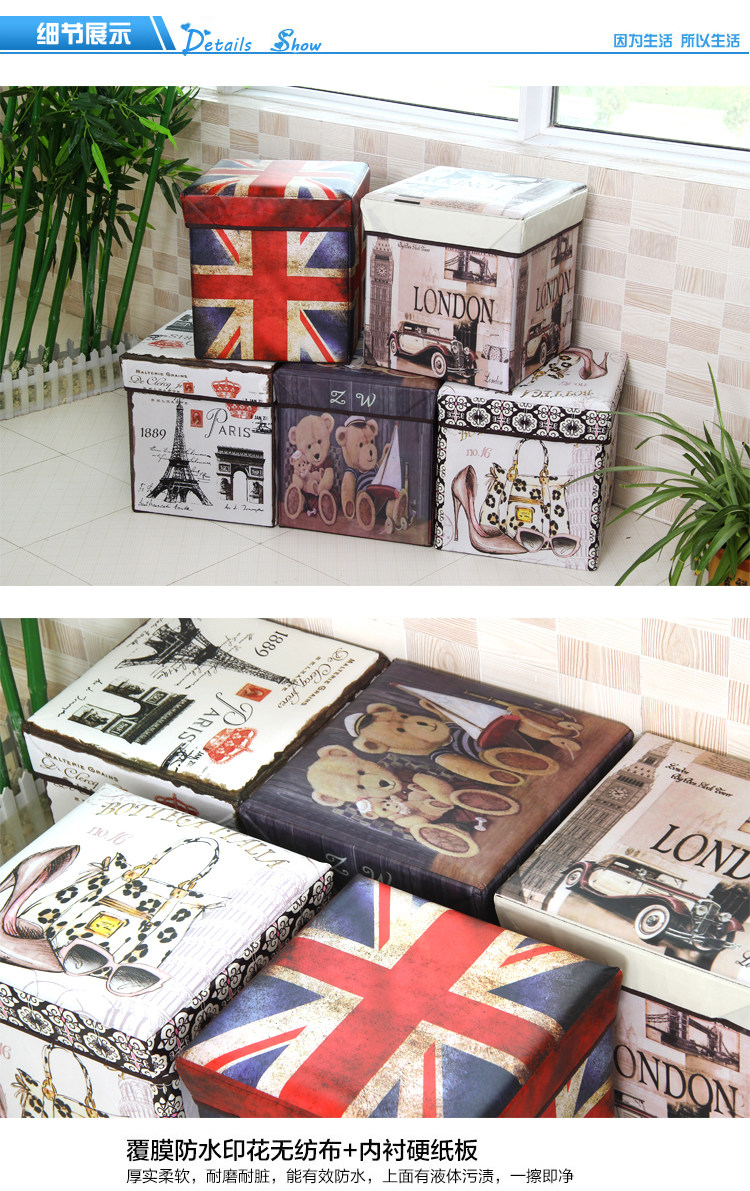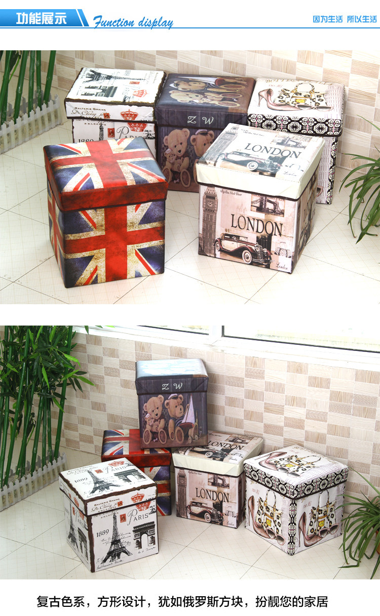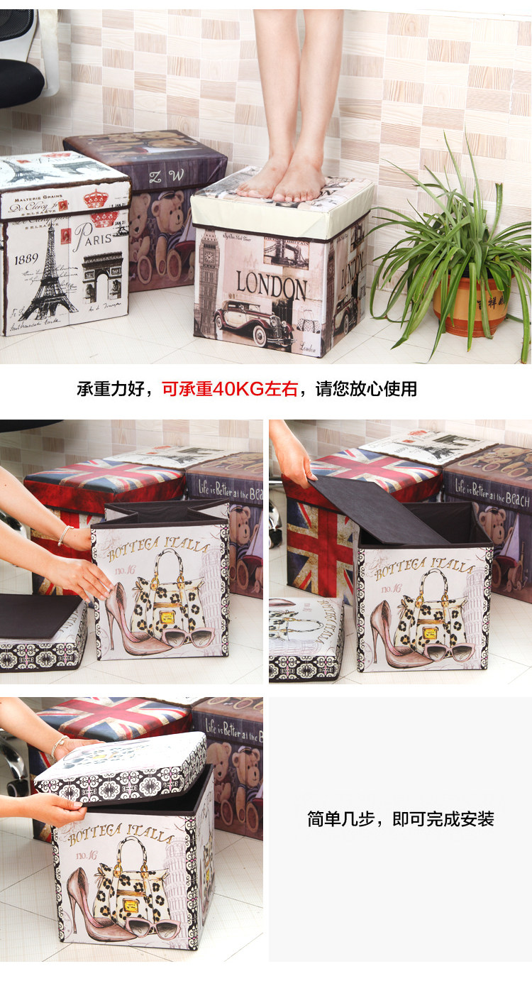 Name: retro print folding stool Size: about 30x30x30cm Material: coated non-woven + cardboard packaging: PP bags Weight: 1300g Color: As shown in the page color properties, optional Overview: a powerful stool, both store all kinds of debris can also be placed at the entrance as changing his shoes stool, living glove stool, ottoman and so on. Film printing non-woven material, lined with cardboard, loading capacity of good, strong and durable.