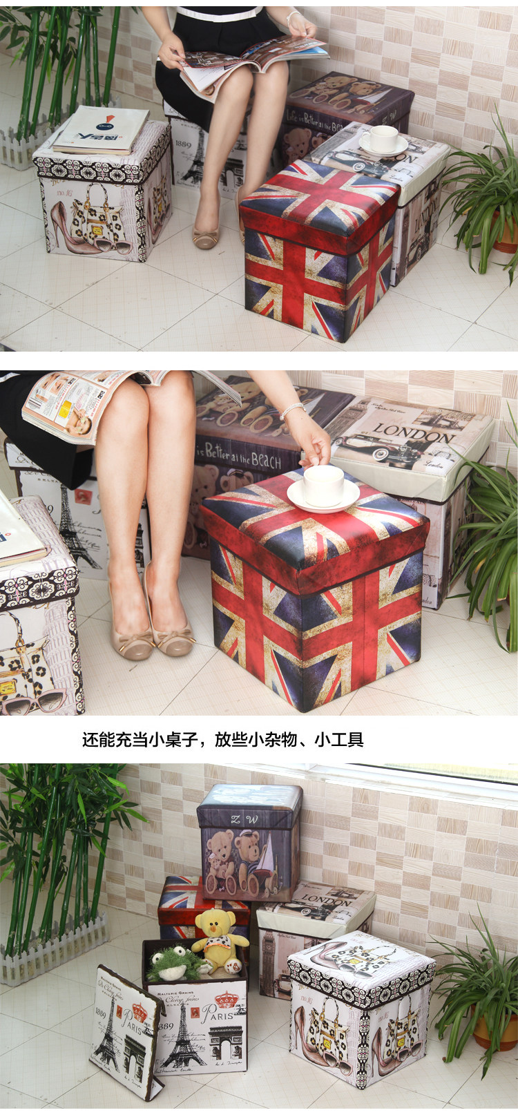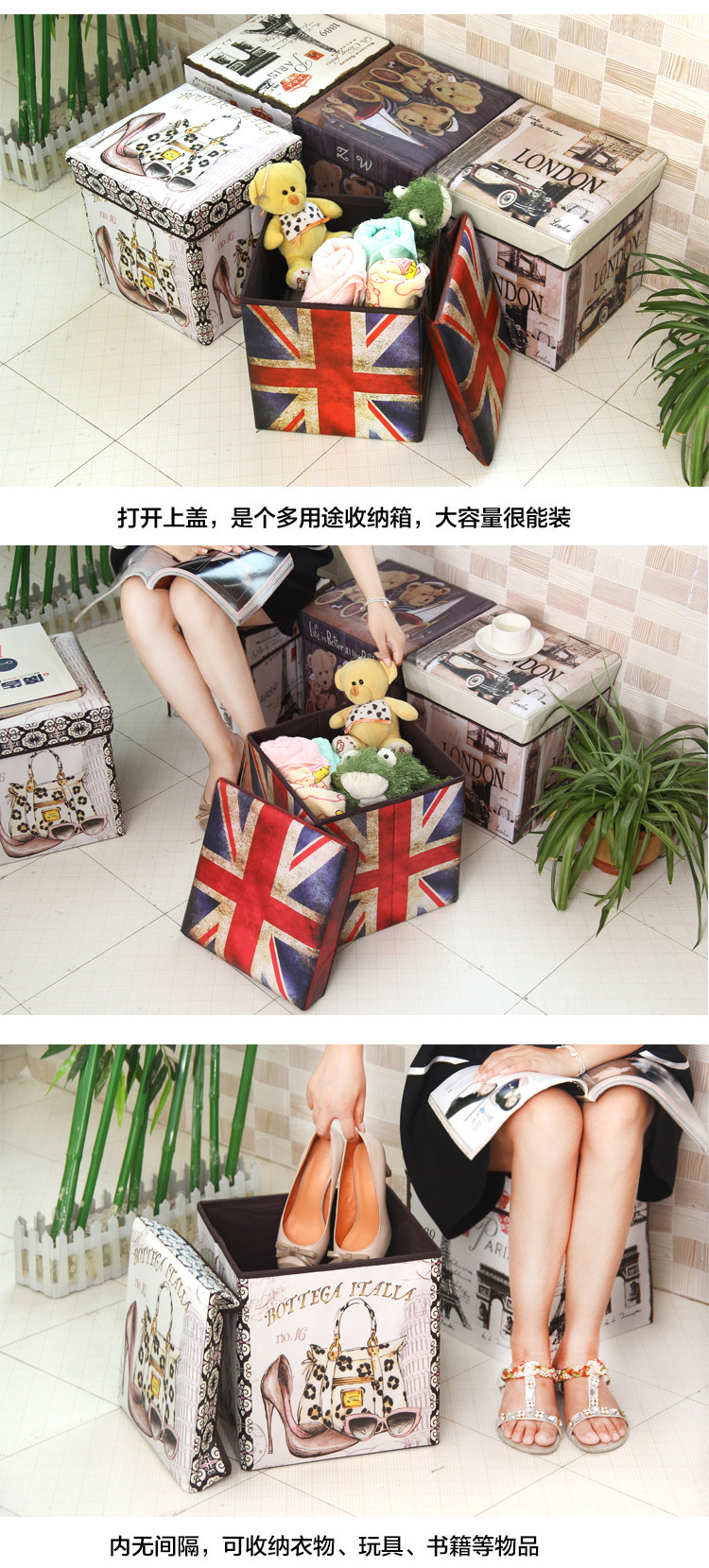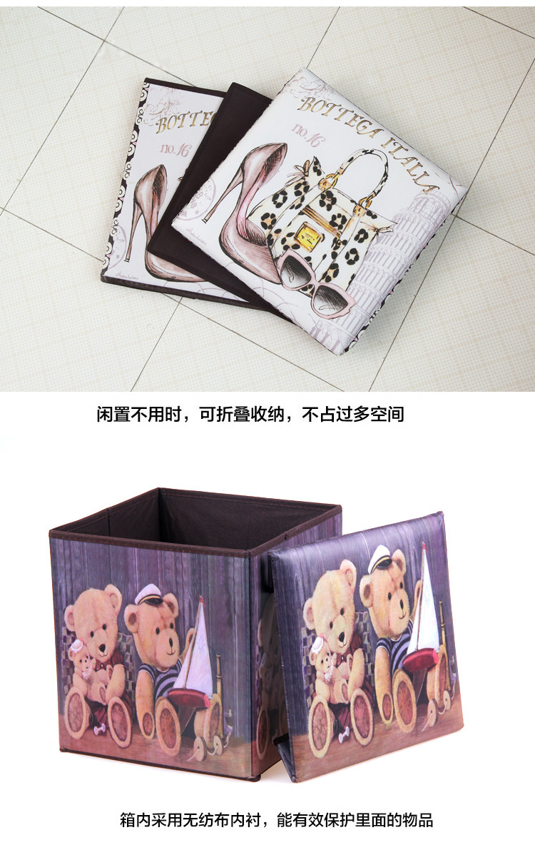 Name: retro print folding stool Size: about 30x30x30cm Material: coated non-woven + cardboard packaging: PP bags Weight: 1300g Color: As shown in the page color properties, optional Overview: a powerful stool, both store all kinds of debris can also be placed at the entrance as changing his shoes stool, living glove stool, ottoman and so on. Film printing non-woven material, lined with cardboard, loading capacity of good, strong and durable.