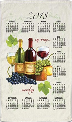 2018 Kitchen Linen Calendar Towel with Dowel for Easy Hanging (Wine & Cheese)