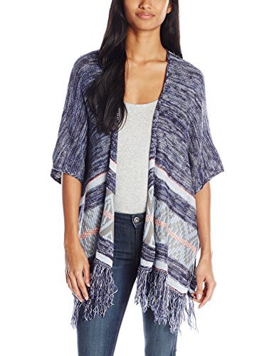 Jolt Junior's Marled Stripe Fringe Cardigan Sweater