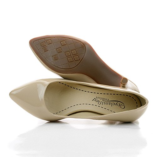 Binding : Apparel Product Description Doll yourself up in these classy low heel pumps, featuring a pointy closed toe, contrast stitching, a padded insole for extra comfort, and an approximate 2.75 inch low heel. (Please note that these measurements are based on a size 6). Style fits true to size (very fitted). Available in Black Pu (Black), Black Pat, Black Nub, Aqua Pat (Green), Lipstick Pat (Red), White Pat (White), Dark Beige Pat (Beige), etc. All man made materials. By City Classified Shoes. Please note that all monitors display color differently, what you see on your monitor might be slightly different from the actual product. 0