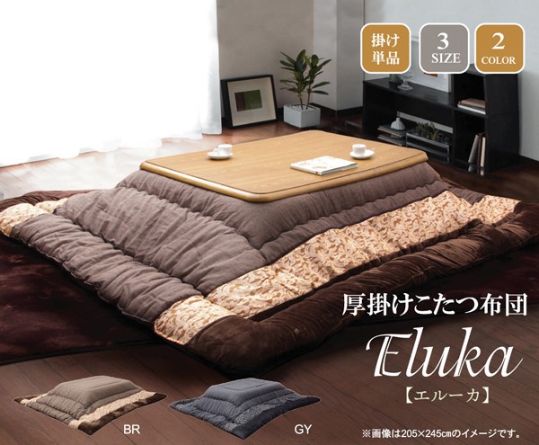 【商品名】こたつ厚掛け布団 こたつ布団 単品 『エルーカ』 グレー 205×245cm(裏:マイクロファイバー)