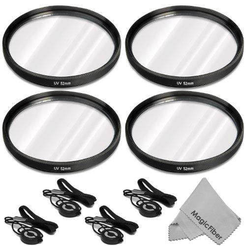 Includes: 4 Pieces of 52MM Ultraviolet Lens Protection Filter with 4 Pieces of Cap Keeper Holder + MagicFiber Microfiber Lens Cleaning Cloth
