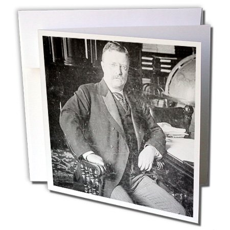 3dRose Teddy Roosevelt at His Desk Stereoview Black and White - Greeting Cards, 6 x 6 inches, set of 12 (gc_77429_2)