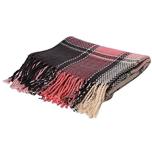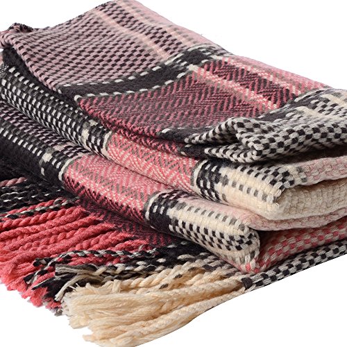 | (QBSM)/Accessories/Scarves/DIRECT FROM USA/QBSM Women Men Winter Knit Warm Tartan Checked Plaid Wrap Scarf Shawls |