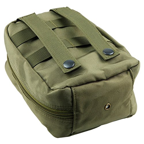 -. Feature : First Aid Bag, TOUGH and DURABLE: 600D Nylon material and sturdy double stitching gives this tactical medic pouch durability in any environment. MOLLE/PALS straps with button allows attachement of this medical pouch to tactical belt, tactical molle vest or molle backpack ect without it falling off. / A small, mesh drawstring bag to store your small first aid supplies and a First Aid patch with velcro backing for easy carring.Perfect for storing survival kit, medical supplies, flashlights, small tools ect. Fully Stocked for an Emergency. / It's EMT first aid bag only and empty, didn't include medical supplies. / Size Details(Approx): 8.7"x6.7"x3.9";Pouch contain tight, internal elastic straps and a spacious pocket for vital first aid supplies / Quantity: 1Pc of bag + 1Pc of patch; Weight(Approx):192Gram