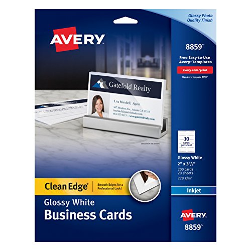 Avery Ink Jet One-Side Printable Clean Edge Business Cards, White, One-Side Glossy, Pack of 200 (8859)