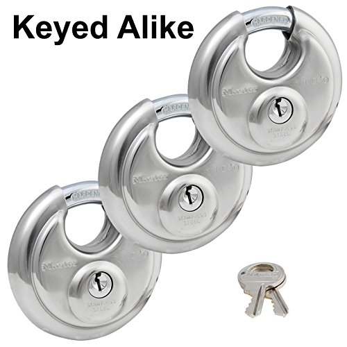 -. Binding : Tools & Home Improvement -. Brand : Master Lock -. EAN : 0071649257933 -. Feature : Value Pack - Three SS padlocks all keyed alike. Comes with 2 keys only. / We CAN NOT provide multiple sets keyed the same - each set comes pre packaged with a unique key number. / 2-3/4" (70mm) wide stainless steel body resists corrosion. / 4-pin cylinder helps prevent picking. Case-Hardened 3/8" steel shackle for extra cut resistance. / Keyed Alike with key retaining feature that ensures padlock is not left unlocked -. Label : Master Lock -. Manufacturer : Master Lock -. Model : 40TRI -. MPN : 40TRI -. NumberOfItems : 1 -. PackageQuantity : 1 -. PartNumber : 40TRI -. ProductGroup : Home Improvement -. ProductTypeName : HARDWARE -. Publisher : Master Lock -. Studio : Master Lock -. Title : Master Lock 40TRI Shrouded Stainless Steel Disk Padlock with 2-3/4" Wide Body (Pack of 3) -. UPC : 071649257933