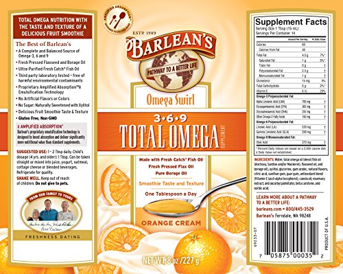 Barlean's Orange Cream Total Omega Swirl, 8-Ounce