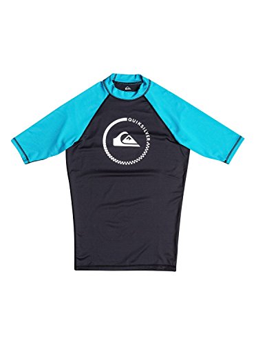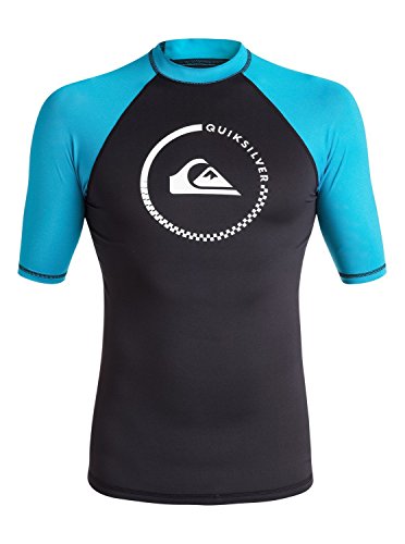 (Quiksilver)/Sports Clothing/Swimwear/DIRECT FROM USA/퀵실버/남성용/반팔/래쉬가드/Quiksilver Men's Lock Up Short Sleeve Rash Guard, Black/Hawaiian Ocean, X-Small