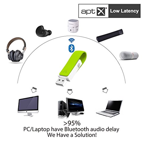 -. Feature : NO AUDIO DELAY - Leaf offers AptX LOW LATENCY support so you can enjoy games, watching movies wirelessly at next-to-none audio delay. (NOTE: To benefit the full Low Latency, you need to use it with a Low Latency supported Bluetooth receiver, such as Avantree Audition Pro, Saturn Pro, BackBeat Pro and more). / UNIVERSAL, PLUG & PLAY - USB audio driver will be detected and installed automatically. Compatible with all USB audio output supported operation system, such as Windows 7 / 8 / 10 / XP / Vista, Mac OS etc. / HIFI STEREO SOUND - aptX audio codec delivers much better sound quality than other analog transmitters. / LONG RANGE - provide transmission distance up to 20meters with Class I Bluetooth headphones/speakers. (In free space without interference) / Easy to use. Support VOIP call. Includes 1meter extension USB cable.