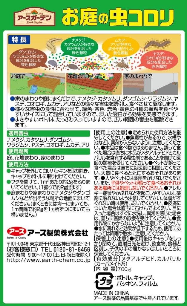 ● 4 types of granules adapted to the dietary nature of various insect pests, induce it by eating alone, eat it and remove it.
